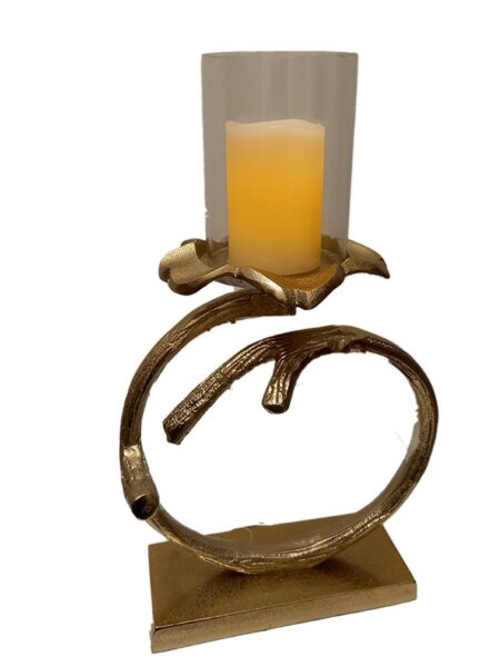 Γυάλινο κηροπήγιο σε χρυσή βάση από μέταλλο, σχέδιο λουλούδι.