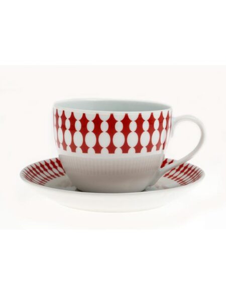 Φλυτζάνια τσαγιού πορσελάνης, σετ 6 τεμαχίων με πιατάκια, με κλασικό μπαρόκ σχέδιο σε μια πλούσια χρυσή -κόκκινη απόχρωση.