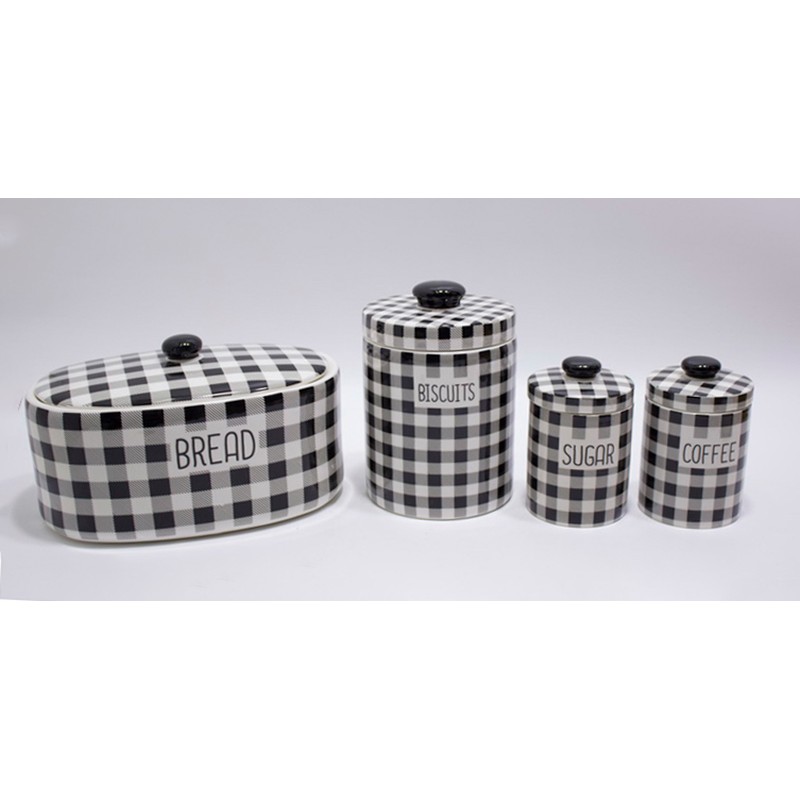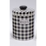 Κεραμικά Βάζα Για Καφέ-Ζάχαρη 2τεμ. Σε Καρό Μαύρο / Άσπρο Με Καπάκι Διακοσμημένα 10.5×10.5×16.5εκ.
