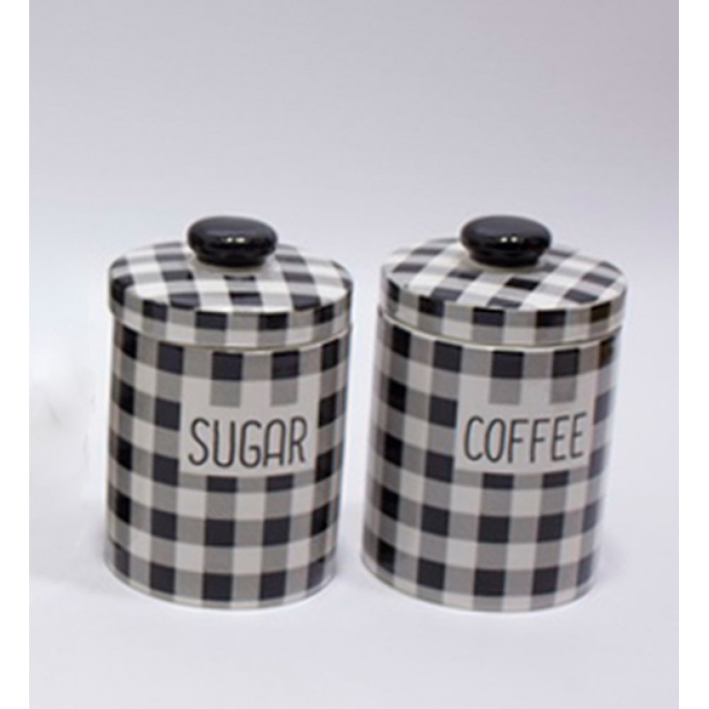 Βάζα Για Καφέ-Ζάχαρη 2τεμ. Σε Καρό Μαύρο / Άσπρο