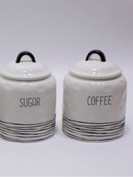 Κεραμικά Βάζα Για Καφέ-Ζάχαρη 2τεμ. Λευκά Με Καπάκι Διακοσμημένα 11.5×11.5×16εκ.