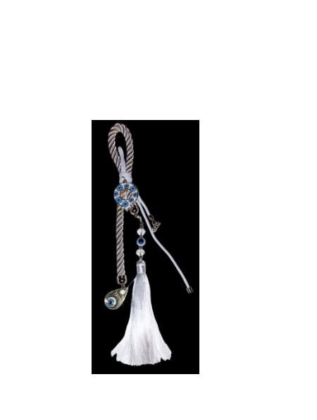 Γούρι σπιτάκι με φούντα, μάτι και χάντρες. Σε κουτί δώρου.