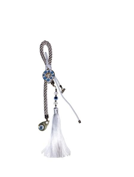 Γούρι καραβάκι με φούντα, μάτι και χάντρες. Σε κουτί δώρου.