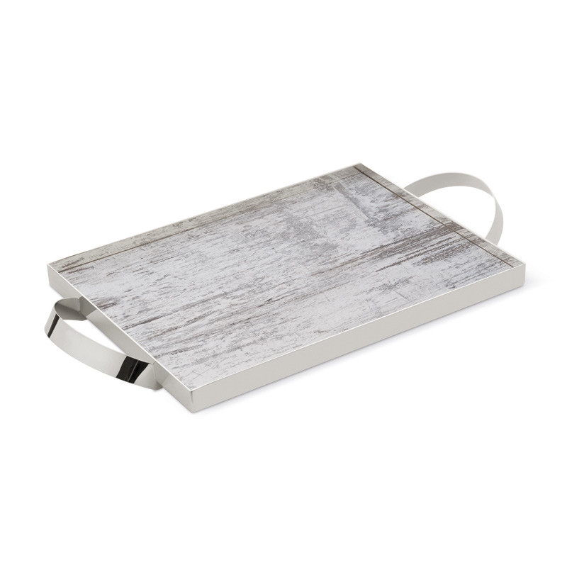 Δίσκος Ξύλινος Vintage Επάργυρος Παραλληλόγραμμος