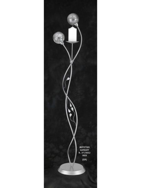 Φωτιστικό κηροπήγιο – λαμπάδα – κηροστάτης γάμου μεταλλικό με 2 μπάλλες χειροποίητες, Ν.311/6032 σε χρώμα ΑΣΗΜΙ (INOX). Οι λάμπες που δέχεται είναι G9.