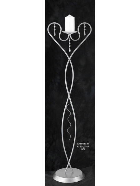 Φωτιστικό κηροπήγιο – λαμπάδα – κηροστάτης γάμου μεταλλικό σχέδιο ΚΑΡΔΙΑ, Ν.321/3517 σε χρώμα ΑΣΗΜΙ (INOX).
