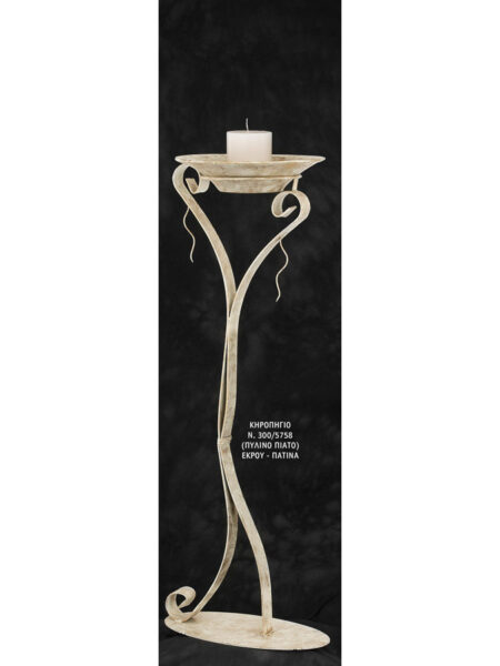 Κηροπήγιο – λαμπάδα – κηροστάτης γάμου μεταλλικό με κεραμικό πιάτο, Ν.300/5758 σε χρώμα ΕΚΡΟΥ – ΠΑΤΙΝΑΣ.