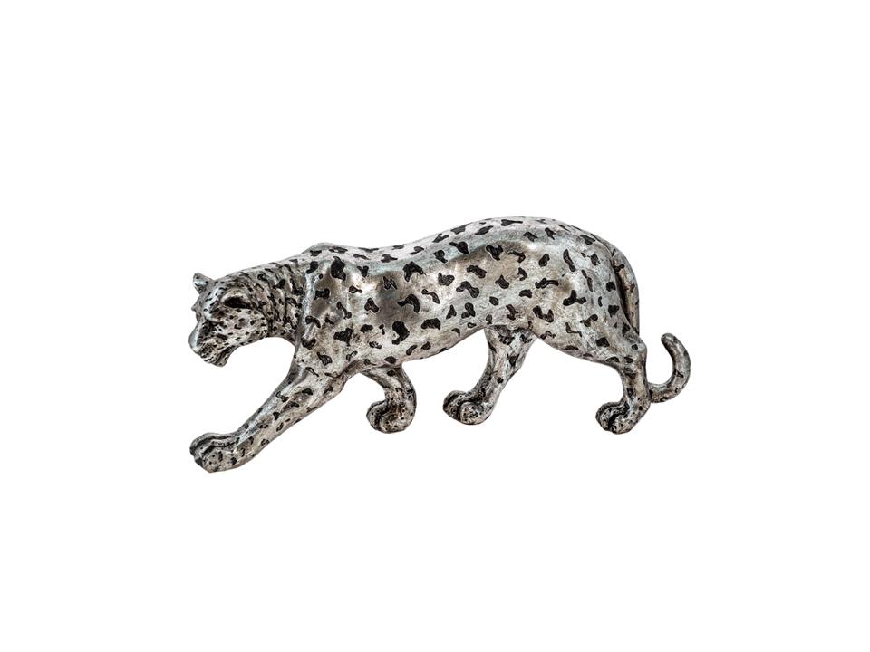 Διακοσμητική λεοπάρδαλη πολυεστερική ασημί με μαύρες βούλες.
