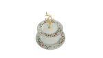 Διώροφη εταζέρα πορσελάνης με ασημένιο χεράκι. Σχέδιο Αλεξανδρινό.