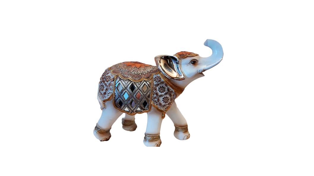 Ελέφαντας polyresin σαμπανί με ανάγλυφα χρυσά-ασημένια σχέδια, 15×17εκ.