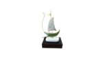 Διακοσμητικό μπρούτζινο χειροποίητο καράβι σε πέτρα και ξύλινη βάση. 19χ9εκ.