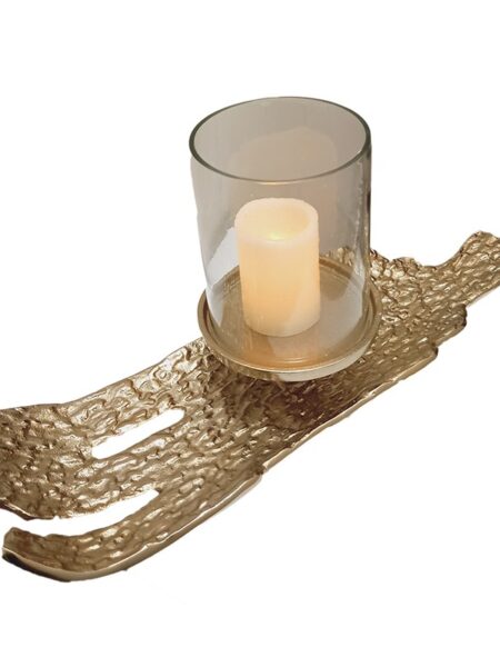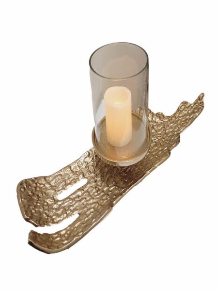 Πιατέλα-κηροπήγιο χρυσή μεταλλική με γυαλί . 46x15x19εκ.