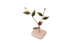 Κλαδί με κεραμική μπορντώ παπαρούνα με 2 φύλλα και κρυσταλλάκι σε ξύλινη βάση, χειροποίητο.