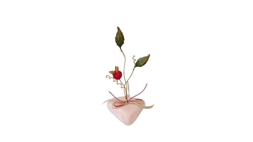 Χειροποίητο κλαδί ροδιάς με κόκκινο καρπό και φύλλο. Σύμβολο αφθονίας, γονιμότητας και ευτυχίας. 10εκ.