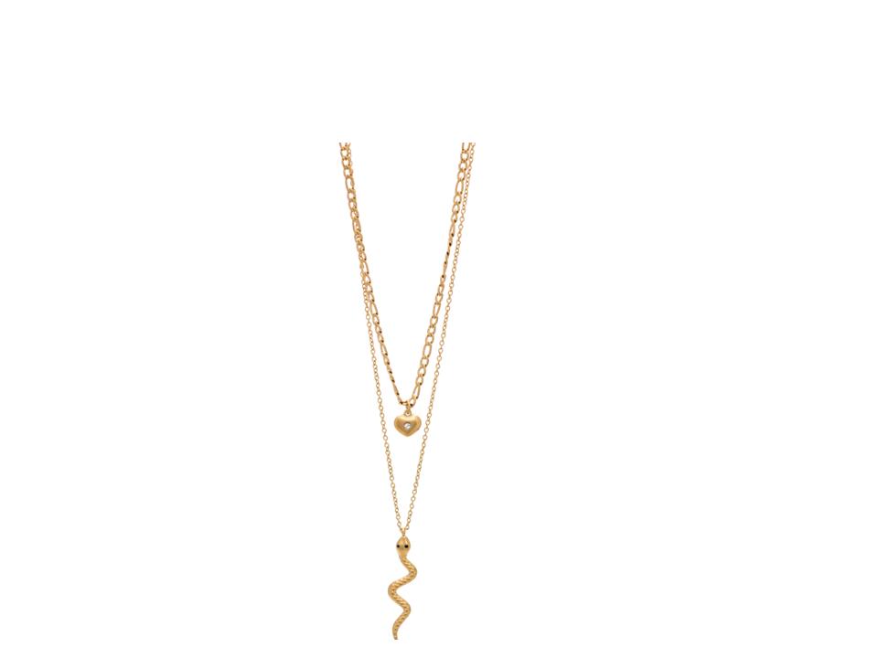 Κολιέ από ανοξείδωτο ατσάλι σε χρυσό χρώμα, 2πλο, κρεμαστή καρδία- φίδι.