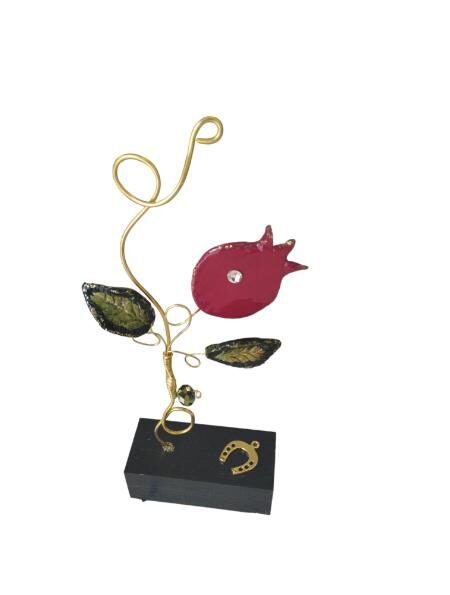 Χειροποίητο κλαδί ροδιάς με κόκκινο καρπό και φύλλα. Σύμβολο αφθονίας, γονιμότητας και ευτυχίας. 13εκ.