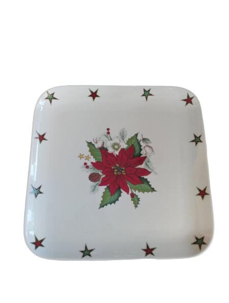 Πιατέλα πορσελάνης τετράγωνη, σχέδιο Δενδράκια και Αστέρια. 29χ29εκ.