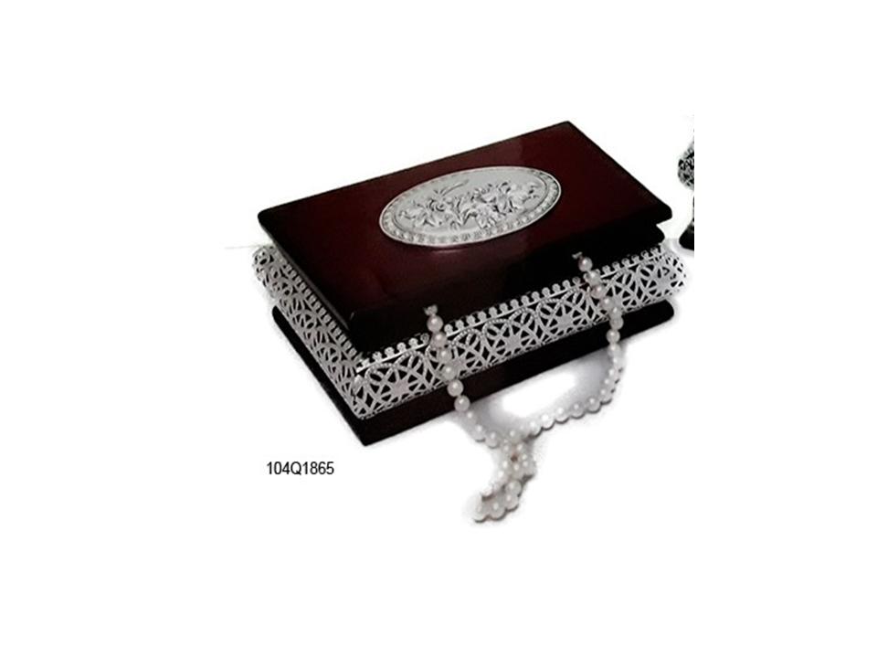 Μπιζουτιέρα – κοσμηματοθήκη ξύλινη, με επάργυρα ανάγλυφα σχέδια.
