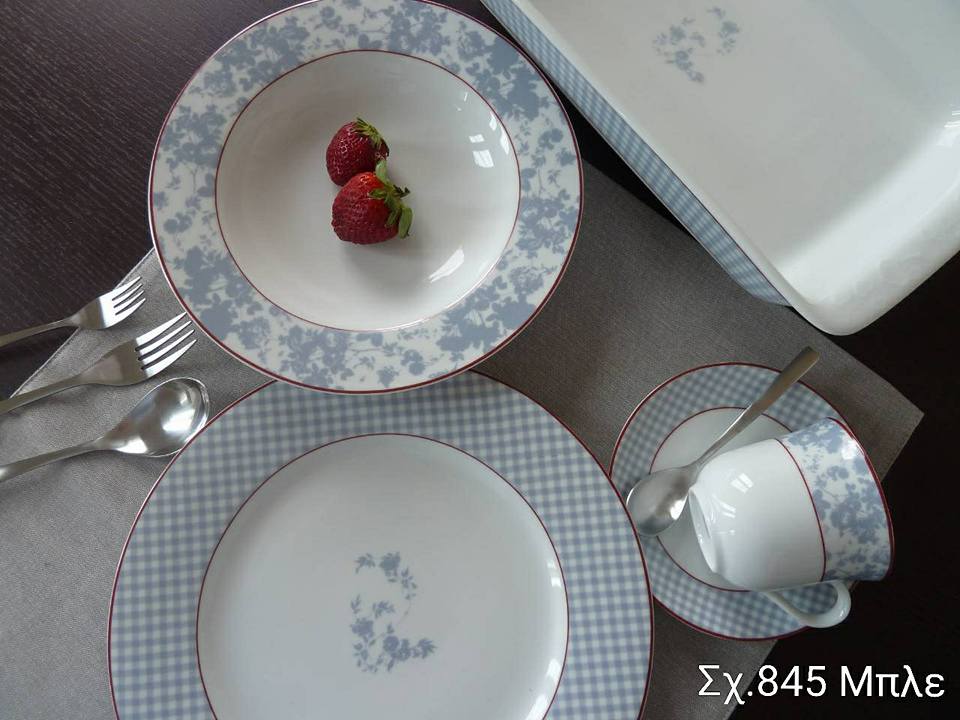 Σερβίτσιο φαγητού 20 τεμαχίων από υψηλής ποιότητας πορσελάνης , μπλε λουλούδια και κομποζέ ρόμβους.