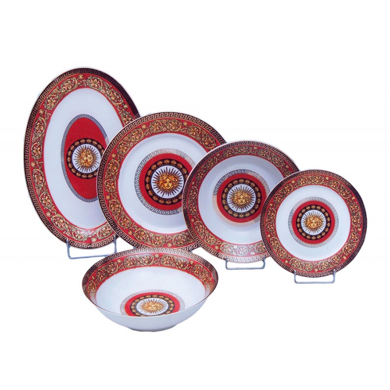 Το σετ περιλαμβάνει : 24 ρηχά, 12 βαθιά, 12 φρούτου, 12 γλυκού, 1 σουπιέρα, 1 σαλτσιέρα, 1 πιατέλα στρογγυλή, 4 ραβιέρες, 2 σαλατιέρες και 3 οβάλ πιατέλες. Κατάλληλο για δώρο γάμου.