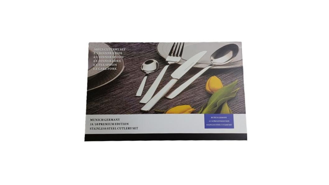 Σετ μαχαιροπίρουνα 30 τεμαχίων από ανοξείδωτο ατσάλι 18/10 σε συσκευασία δώρου. Ασφαλής για το πλυντήριο πιάτων.