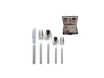 Το σετ περιλαμβάνει: 12 μαχαίρια φαγητού, 12 κουτάλια φαγητού, 12 πηρούνια φαγητού, 12 κουτάλια γλυκού, 12 πηρούνια γλυκού, 1 κουτάλα σούπας, 1 σπάτουλα, 1 πηρούνι σαλάτας, 1 κουτάλα σαλάτας, 1 κουτάλα σερβιρίσματος.,Σε συσκευασία δώρου. Ασφαλής για το πλυντήριο πιάτων. TSAK
