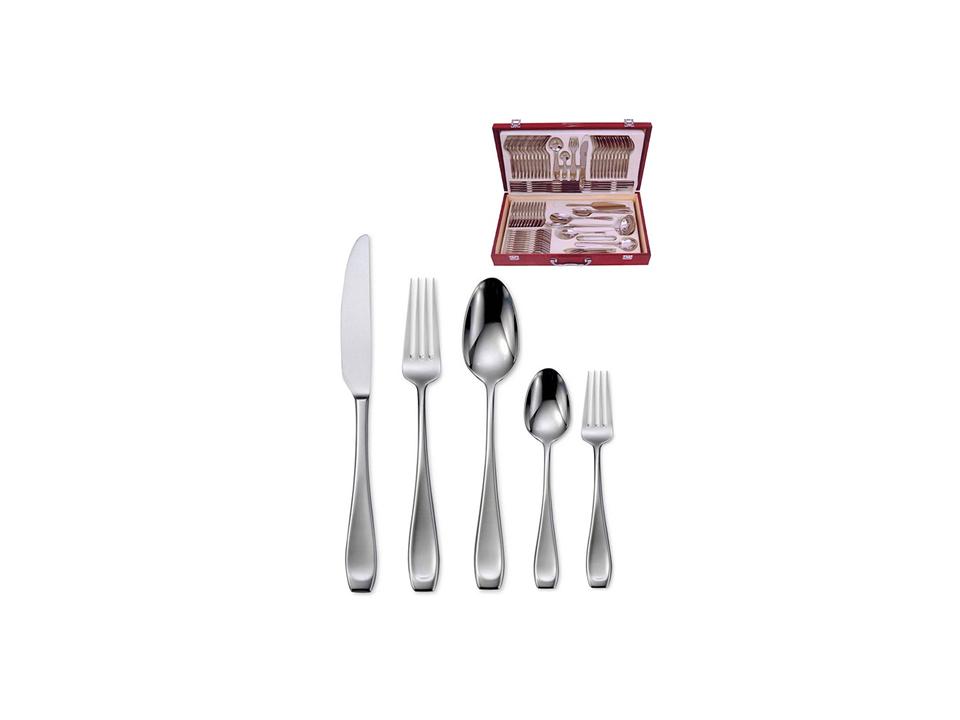 Το σετ περιλαμβάνει:6 πιρούνια φαγητού, 6 μαχαίρια φαγητού, 6 κουτάλια φαγητού, 6 κουτάλια γλυκού, 6 πιρουνάκια γλυκού.