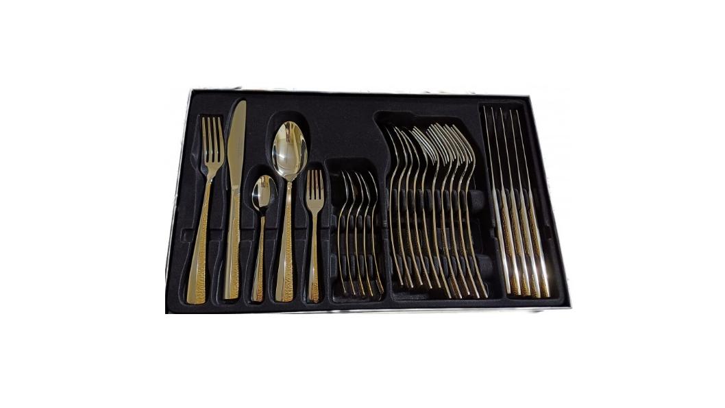 Το σετ περιλαμβάνει:6 πιρούνια φαγητού, 6 μαχαίρια φαγητού, 6 κουτάλια φαγητού, 6 κουτάλια γλυκού, 6 πιρουνάκια γλυκού.
