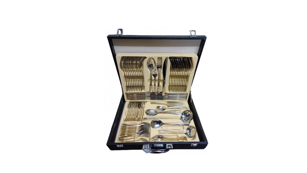 Μαχαιροπίρουνα Ασημί/Χρυσό από ανοξείδωτο ατσάλι 18/10 διατίθενται σε πολυτελή βαλίτσα των 72 τεμαχίων. Τα μαχαιροπίρουνα έχουν μεγάλη αντοχή, δεν φθείρονται εύκολα και είναι ανθεκτικά στο πλυντήριο πιάτων.
