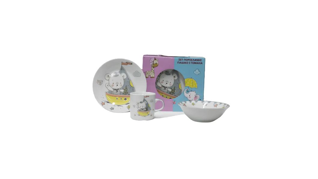 Σετ παιδικό πορσελάνης 3 τεμαχιών, σχέδιο ΑΡΚΟΥΔΑΚΙ.