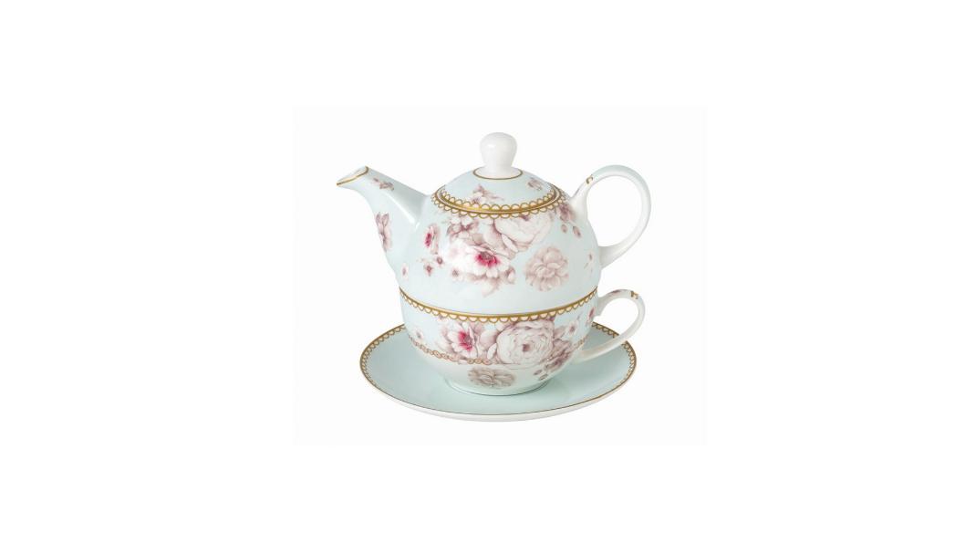 Σετ φλιτζάνι τσαγιού με πιατάκι και τσαγιέρα εξαιρετικής ποιότητας πορσελάνη φλοραλ σχέδια, σε πολυτελή συσκευασία δώρου. 14x17x15εκ.