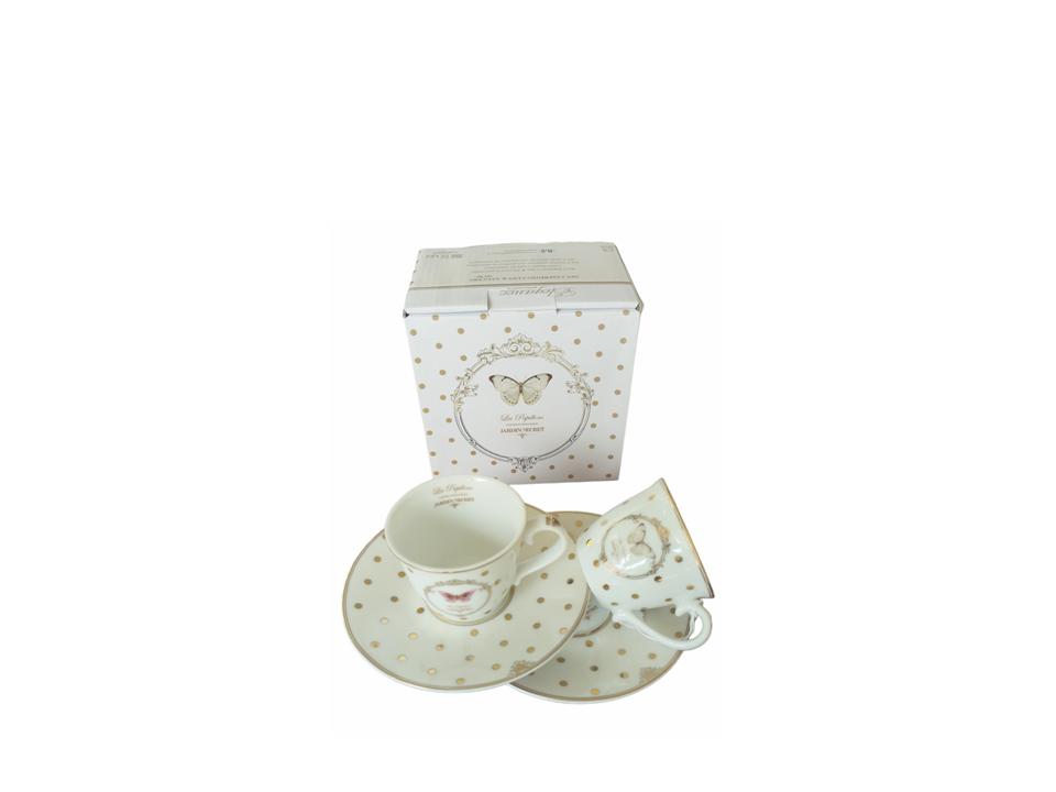Σετ 2 φλυτζάνια espresso με πιατάκια σε πολυτελή συσκευασία δώρου. Διάκοσμος χρυσές βούλες με πεταλούδα.