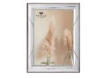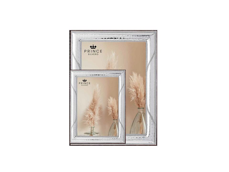 Ασημένιες κορνίζες με ξύλινη λουστραρισμένη πλάτη και διπλό σιρίτι. Σετ 2 τεμάχια 9χ13εκ, 13χ18εκ.