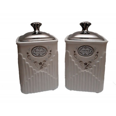 Σετ 2 τεμαχίων κεραμικά βάζα για καφέ και ζάχαρη, με επιμεταλωμένο καπάκι, διακοσμημένα.