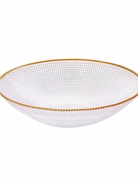 Γυάλινη φρουτιέρα-σαλατιέρα με χρυσό γείσο.