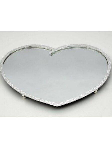 Δίσκος καρδιά επάργυρος, σφυρίλατος, λουστραρισμένος για να μη μαυρίζει, με περίγραμμα και βάση καθρέφτη.