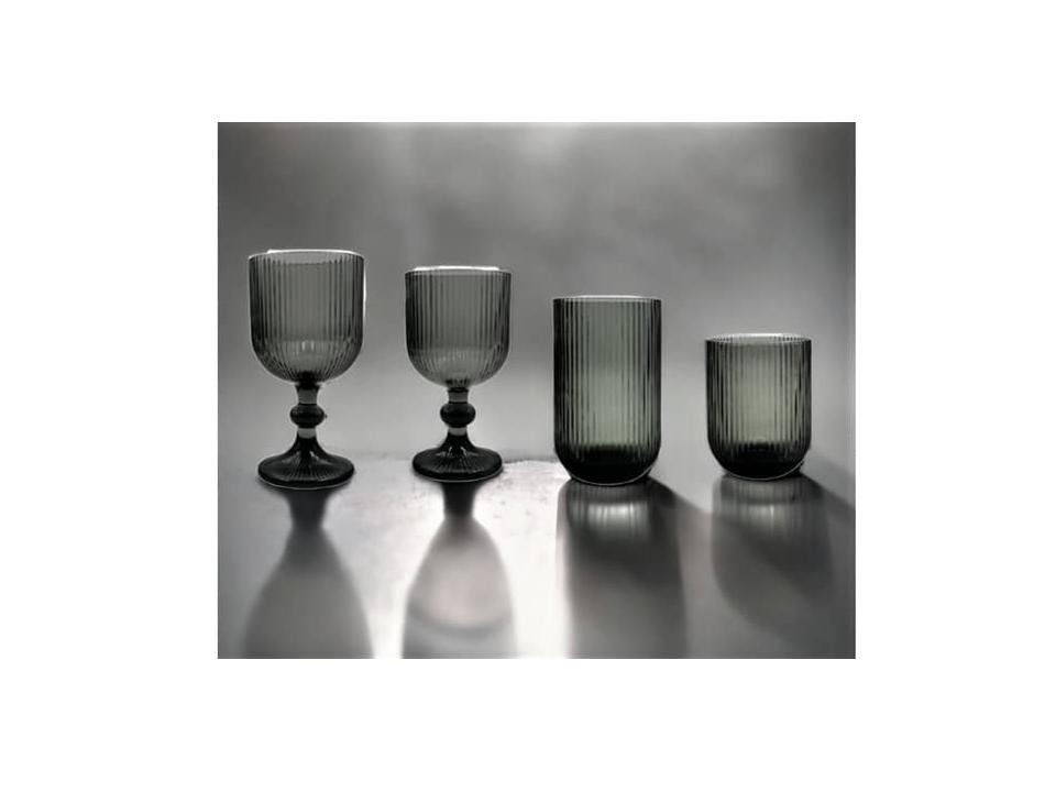 Χειροποίητο ποτήρι με την μέθοδο του φυσητού γυαλιού, εντυπωσιακός σχεδιασμός με ανάγλυφες γραμμές σε χρώμα Γκρι.
