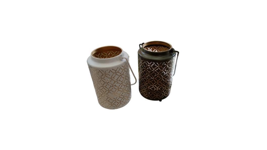 Μεταλλικό φαναράκι άσπρο με μεταλλικό χεράκι.