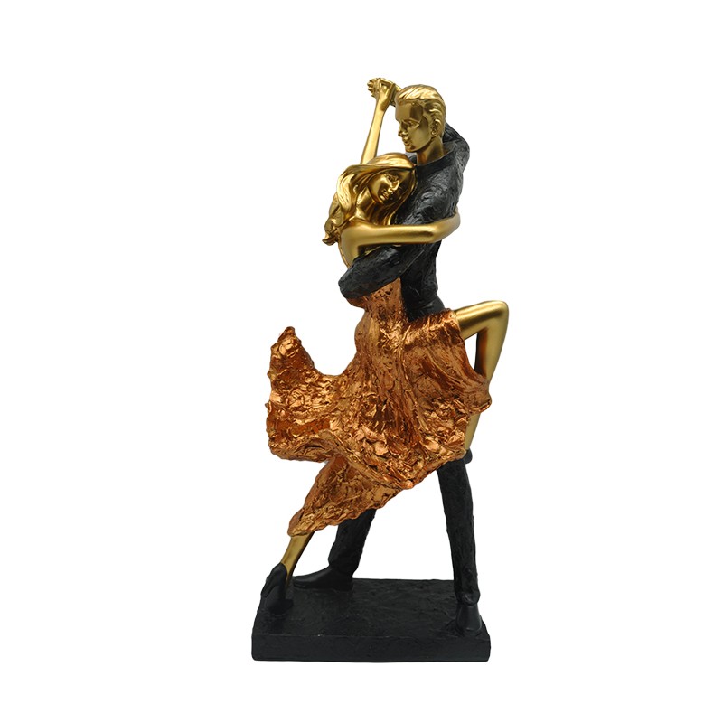 Διακοσμητική Πολυεστερική Φιγούρα Ζευγάρι Χορευτών Σε Χρυσό, Μαύρο, Πορτοκαλί .