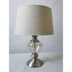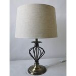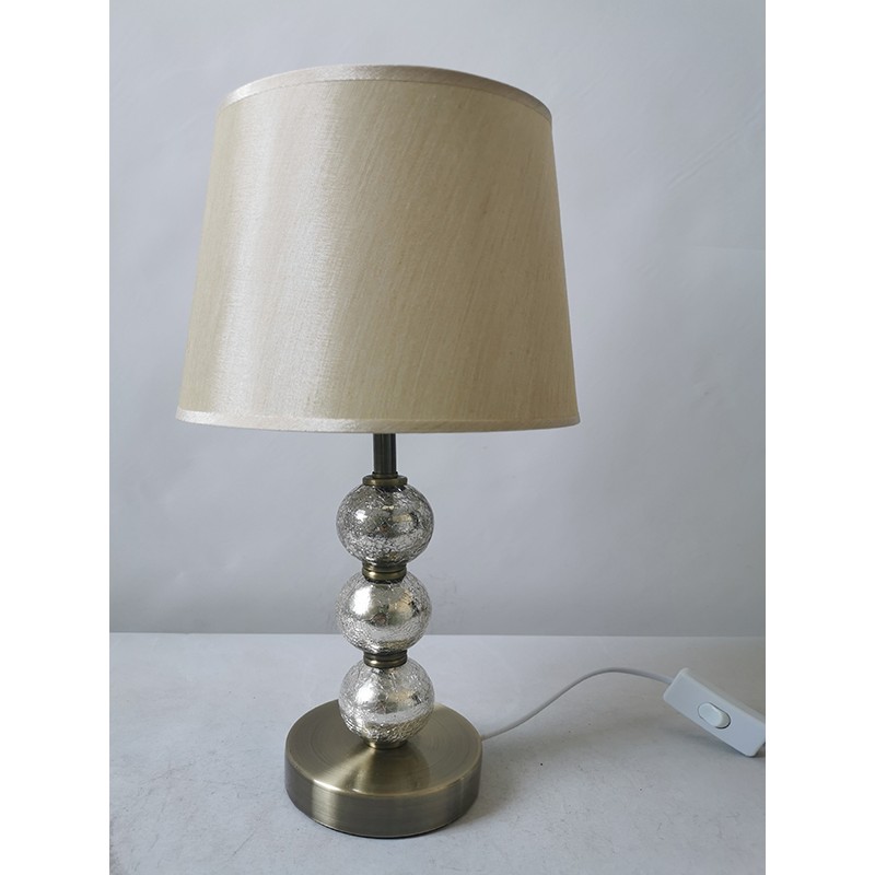 Φωτιστικό επιτραπέζιο μεταλλικό με διακοσμητικές γυάλινες μπάλες και υφασμάτινο καπέλο 40×20εκ.