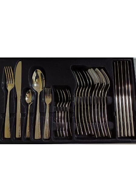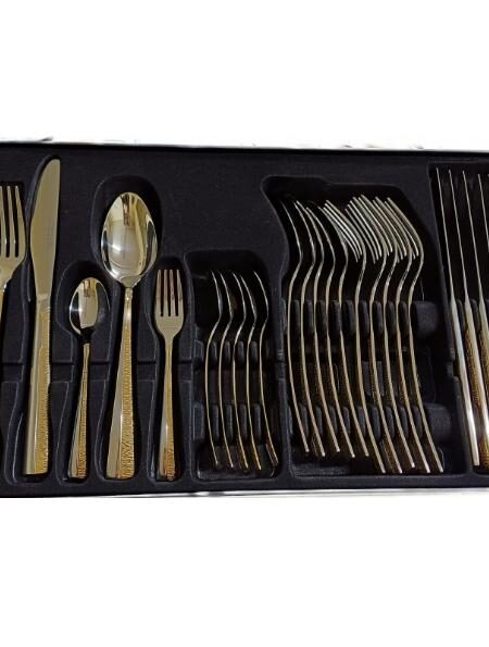 Το σετ περιλαμβάνει:6 πιρούνια φαγητού, 6 μαχαίρια φαγητού, 6 κουτάλια φαγητού, 6 κουτάλια γλυκού, 6 πιρουνάκια γλυκού.