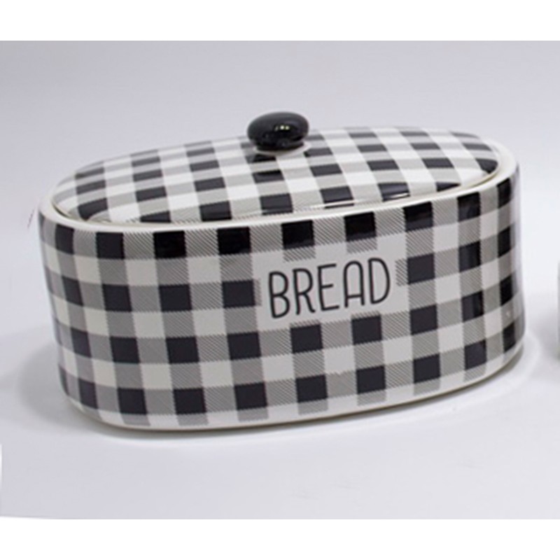 Ψωμιέρα Με Καπάκι Κεραμική Σε Καρό Μαύρο / Άσπρο 32x22x19.3εκ.