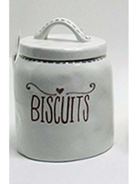 Μπισκοτιερα κεραμική σε λευκό χρώμα και γκρι σχέδιο. Διαστάσεις (Μ x Π x Υ) 13.8 x 13.8 x 18,7 εκ.