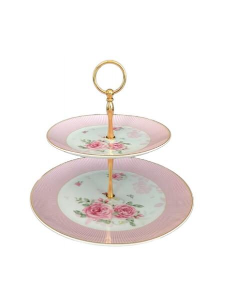 Εξαιρετικής ποιότητας πορσελάνη Πιατέλα-Τουρτιέρα πορσελάνης 2όροφη English Floral Flowers, σε πολυτελή συσκευασία δώρου. 27×24εκ.