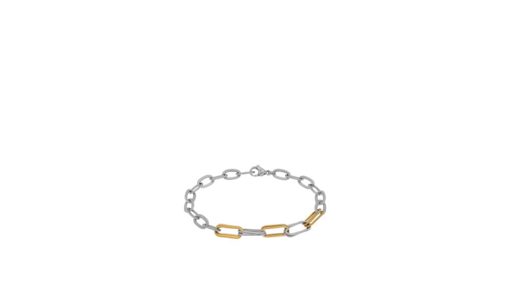 Βραχίολι από ανοξείδωτο ατσάλι χρώματος ασημί – χρυσό, αλυσίδα με κρικάκια.