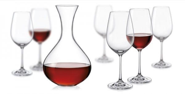 The set consists of 6 glasses 450ml & 1 wine bottle 1500ml BOHEMIAN.